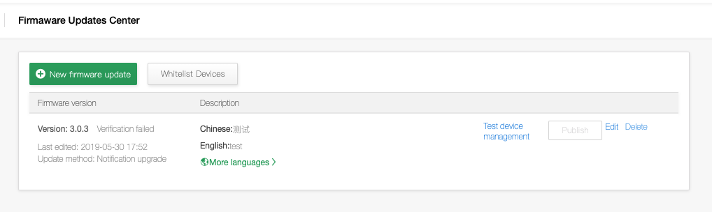 After creating, go to the “Firmware Upgrade Text” page. Here you can set the multiple language settings for firmware upgrade texts.