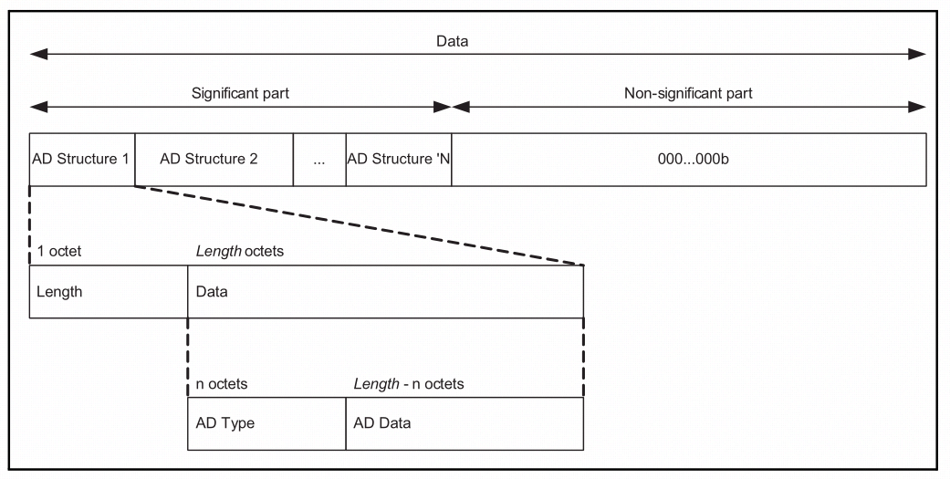 The following picture illustrates the broadcast packet format of BLE.