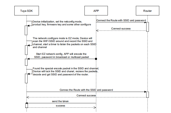 tuya_iot_init: this stage is to initialize necessary functions for Tuya Wi-Fi SDK. Allocate necessary compute and storage resources.app_init: initializes the programming code of application, and set the working mode.device_init: performs API initialization according to the working mode. The initialization API varies for different product categories.SoC series: