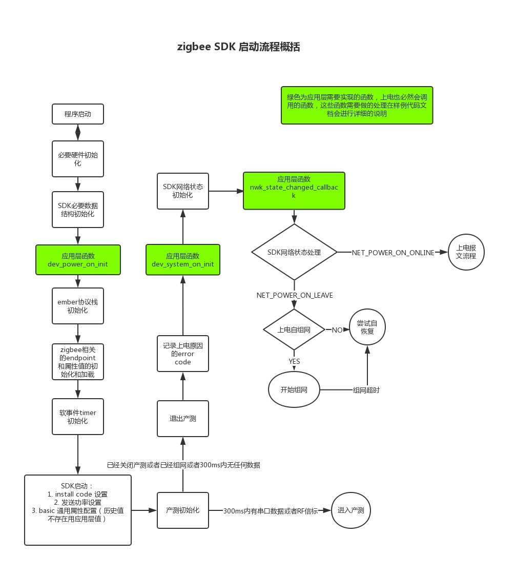 Zigbee SDK will call this function according to the system flowchart,Users need to at least create Zigbee devices,network parameter setting。