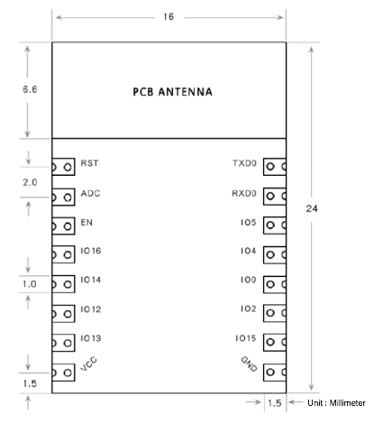 The RST pin resets the module at low level. To use the RST pin, connect it to the I/O port of the MCU and low level input.