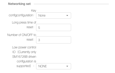 b) Button Pressing Time (s): indicates the time for pressing and holding the button to enter the network configuration mode. The value range is from 3s to 10s. If Network Configuration Button is set to None, this parameter does not need to be specified.