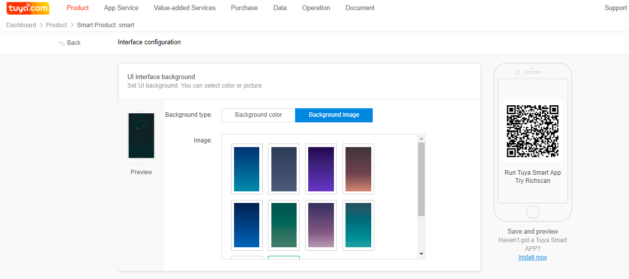 Select a control panel template and use the Tuya Smart or Smart Life App to scan the QR code to verify the control panel effect.