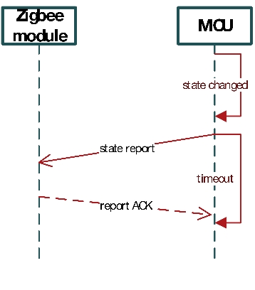II. Proactive reporting: MCU status changes (physical operation or restart after power cut, etc.), reporting the current status to the module actively; MCU actively reporting as asynchronous operation, there is no status report response frame received within the timeout period, or the status of the response frame is unsuccessful, MCU must retransmit.