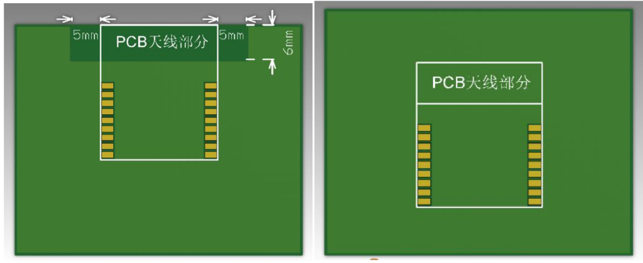 In order to ensure the optimization of RF performance, it is recommended that the distance between the module antenna and other metal parts should be at least 15mm. Since M1 is used by SMT process, it is pasted to the main control board and applied together with other components. Then the placement position and way of PCB antenna will directly affect RF performance. Here are the places we recommend and the places we don't. It is recommended to use the placement position of scheme 1 and scheme 2. The antenna is hollowed out outside the plate frame or near the antenna. The performance and individual module RF test performance is basically the same. If the design is limited, the PCB antenna must be placed on the bottom plate, you can refer to the placement method of plan 3. The antenna is in the plate frame, but there is no copper coating and wiring near the antenna. However, there is some loss of rf performance, which is about 1-2dbm attenuation. It is not recommended to use the placement position of plan 4, the antenna is in the plate frame, and the antenna is coated with copper or wire. The rf signal will be significantly attenuated.