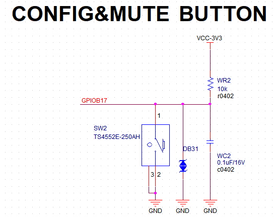 VWXR2 distribution network and MAC keys, you can refer to the following figure, GPIO recommended to pull up to VCC_CC (usually 3.3v), low level is effective, it is recommended to reserve ESD.