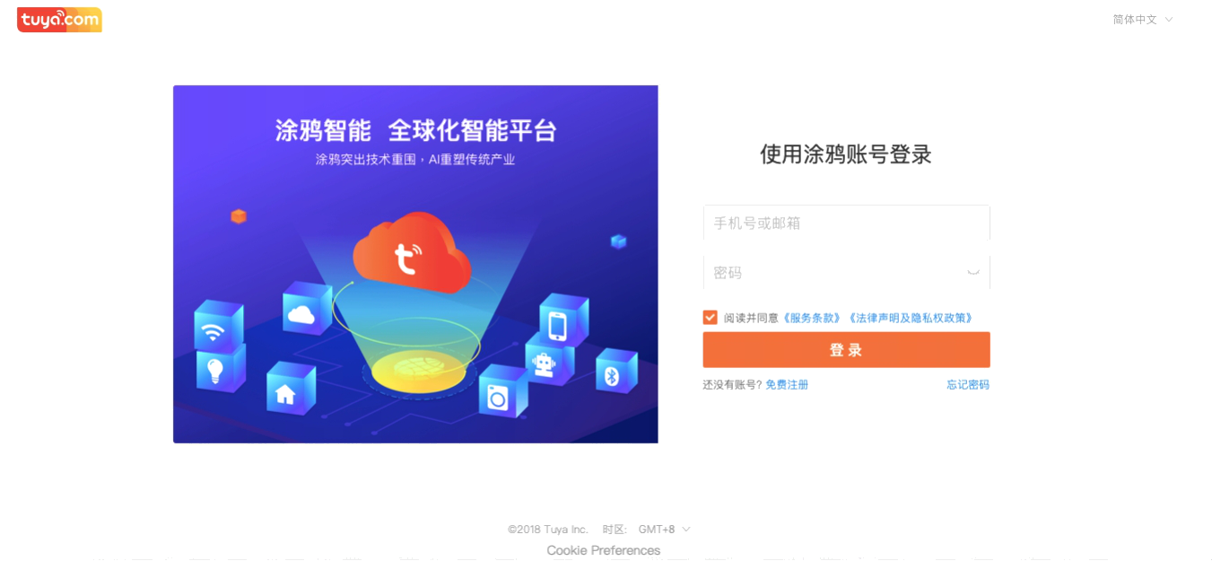 Register and log in:iot.tuya.com