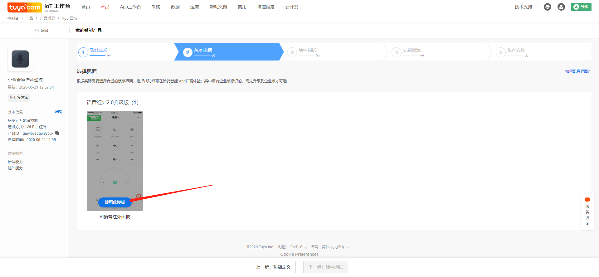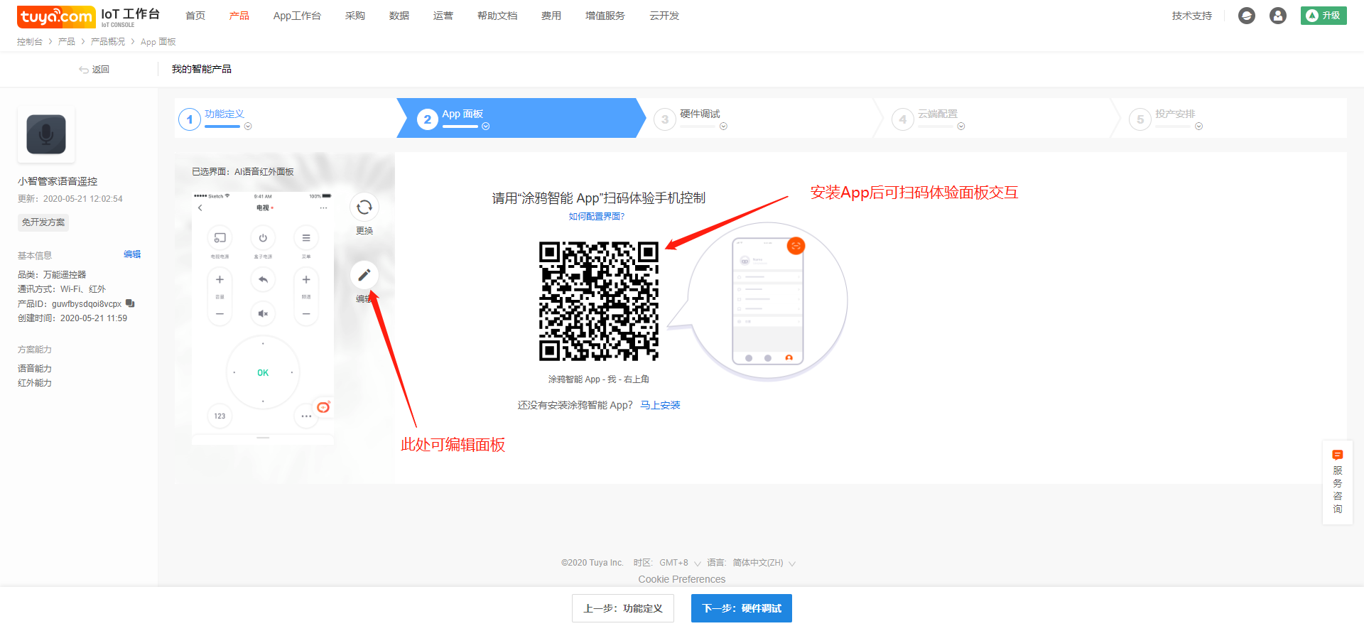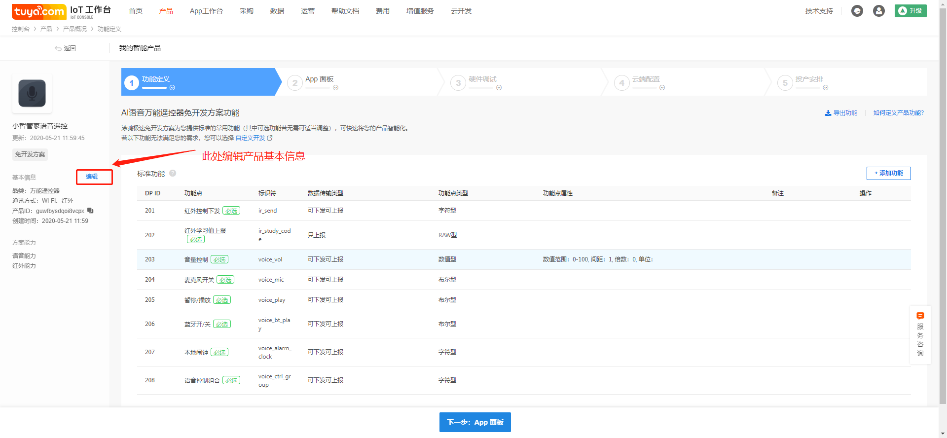 Fill in the product name, which will be displayed on the App control interface