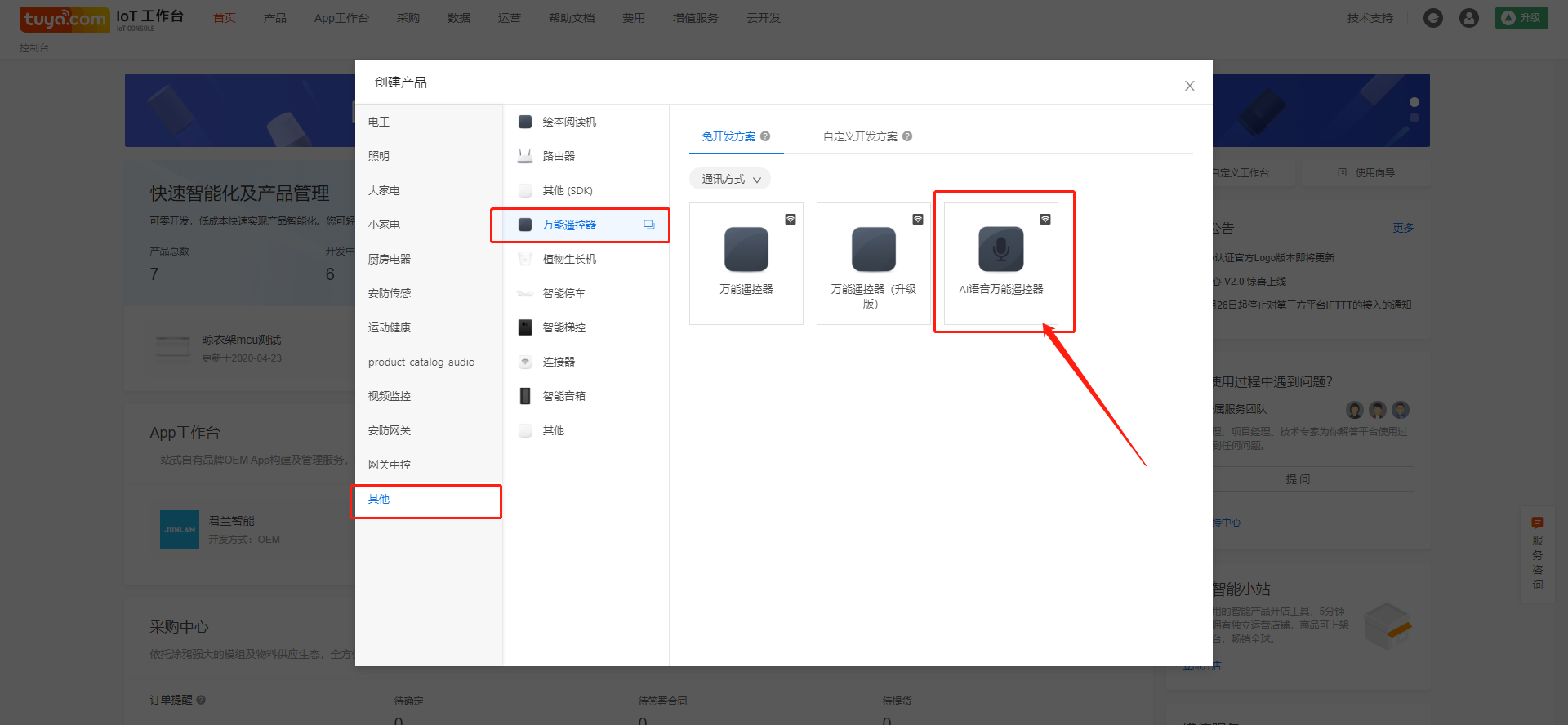 In the "other" category, select "AI voice universal remote control "in" universal remote control ".