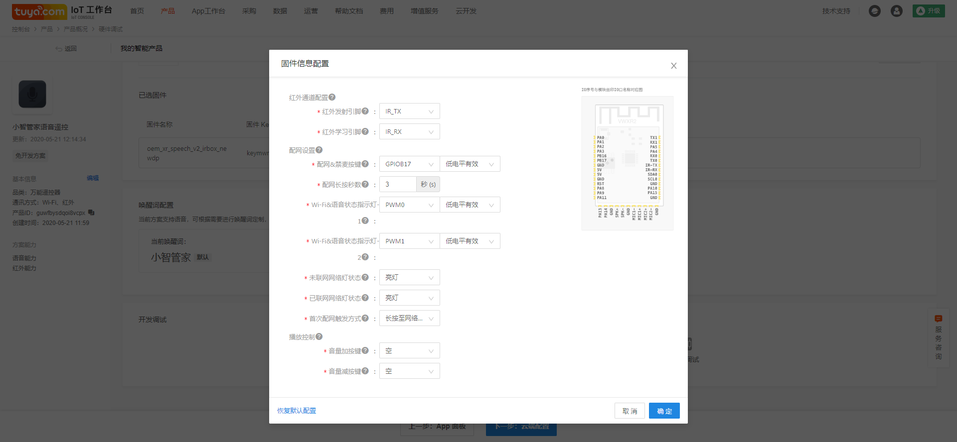 voice infrared scheme supports dual color indicator, dual color indicator is not only used for the distribution network prompt, but also for the voice control lamp