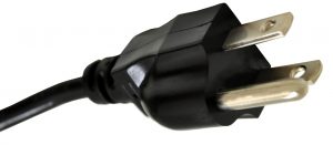 This class I plug is designated as American standard NEMA 5-15. It has two flat 1.5 mm thick blades, spaced 12.7 mm apart, measuring 15.9 – 18.3 mm in length and 6.3 mm in width. It also has a 4.8 mm diameter round or U-shaped earth pin, which is 3.2 mm longer than the two flat blades, so the device is grounded before the power is connected. The centre-to-centre distance between the grounding pin and the middle of the imaginary line connecting the two power blades is 11.9 mm. The plug is rated at 15 amps.