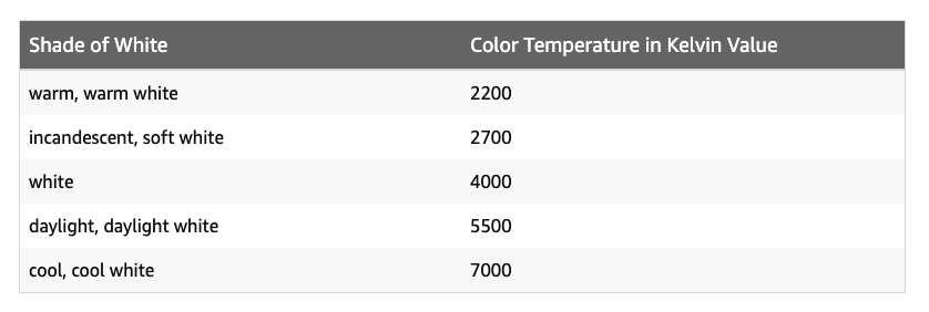 Why don't warm white and cool white among the five color temperature values in the Alexa app correspond to the warmest and coldest light in my app?